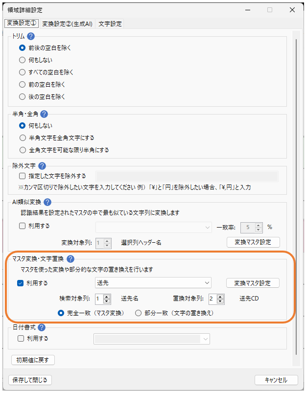 設定方法は、[領域詳細設定]-[変換設定①]について を参照願います。