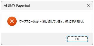 ひとつの AI JIMY Paperbot で作成できるワークフローには上限があります。