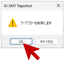 続いて表示される「ワークフローを削除します」ダイアログの[OK]をクリックすることで、ワークフローを削除します。