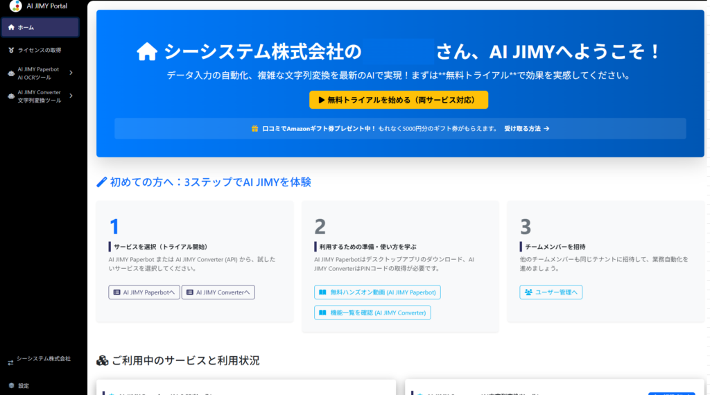 複数のテナントに所属している場合、AI JIMY Portal内でテナントを切り替えて各種ツールが使用できるようになります。詳細につきましては下記リンクをご確認ください。